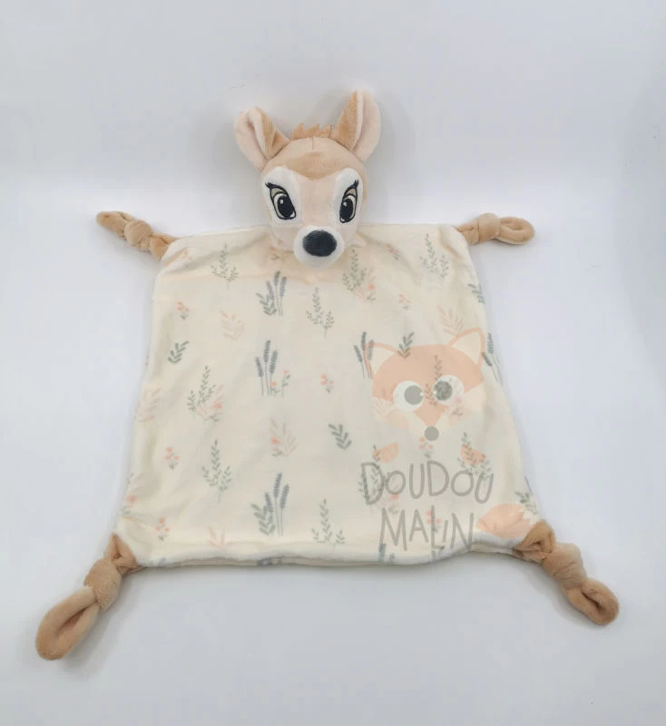 Disney – Bambi Le Faon – Doudou Plat Beige Feuille 30 Cm